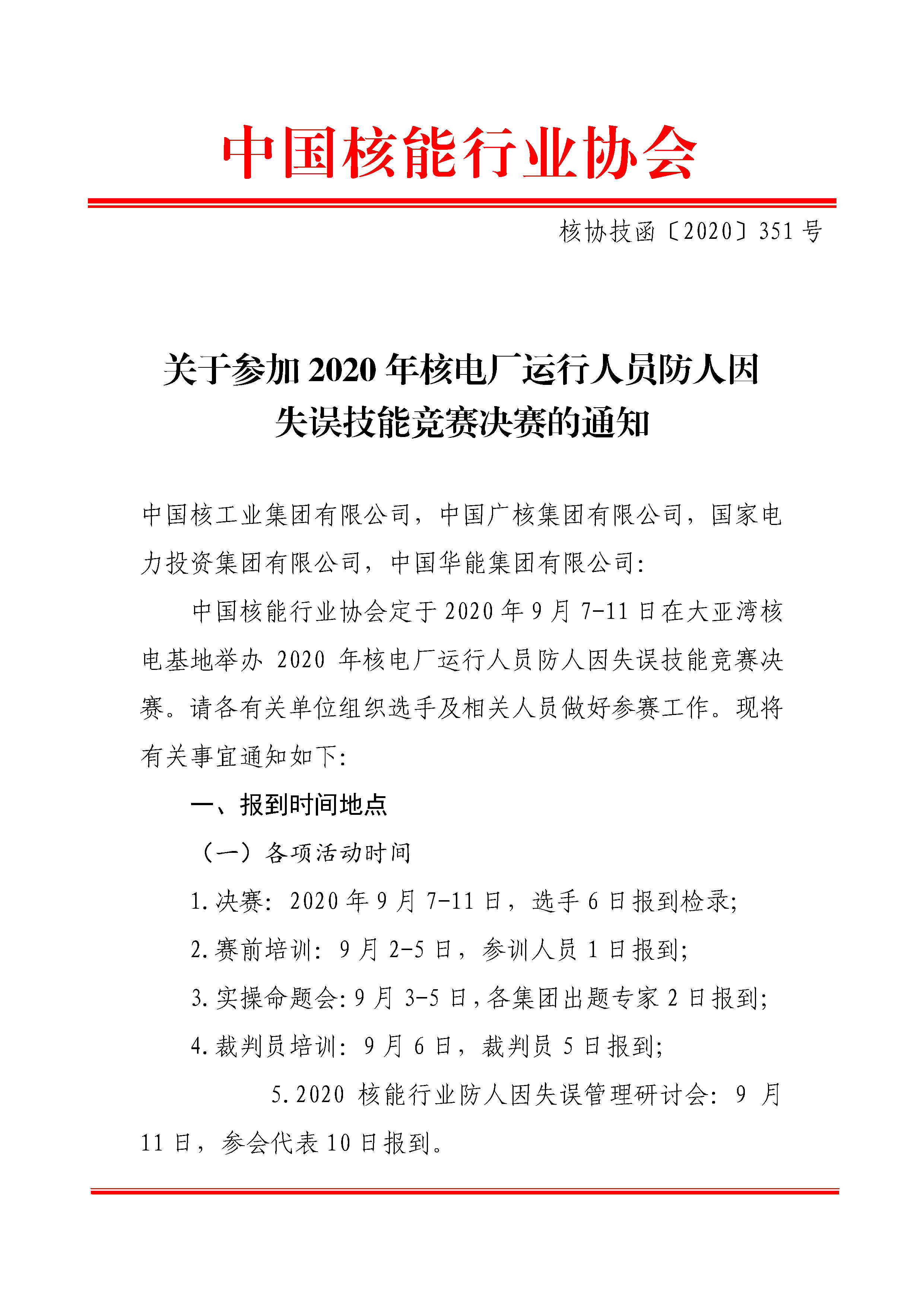 搜狐体育直播:参加2020年核电厂运行人员防人因失误技能竞赛决赛的通知(核协技函〔2020〕351号).pdf