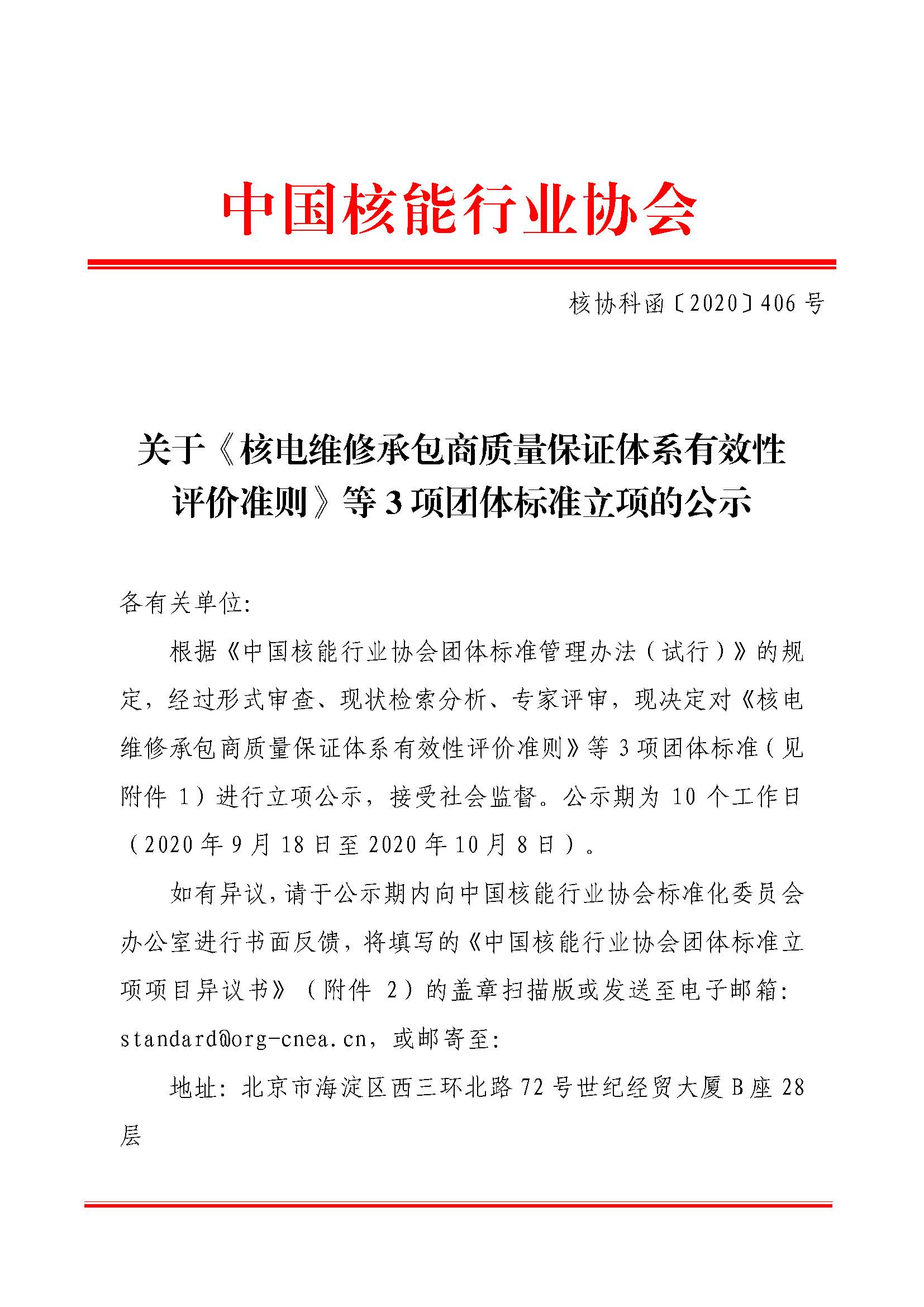 搜狐体育直播:《核电维修承包商质量保证体系有效性评价准则》等3项团体标准准予立项的公示