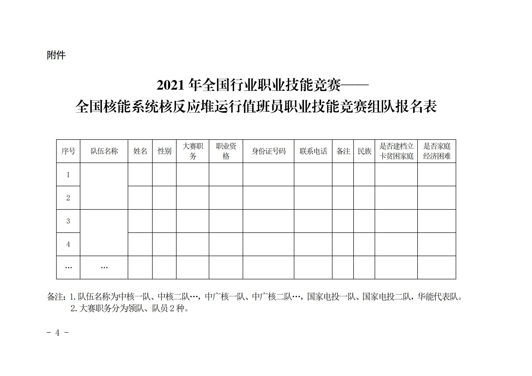 附件:2021年全国行业职业技能竞赛——全国核能系统核反应堆运行值班员职业技能竞赛组队报名表.docx