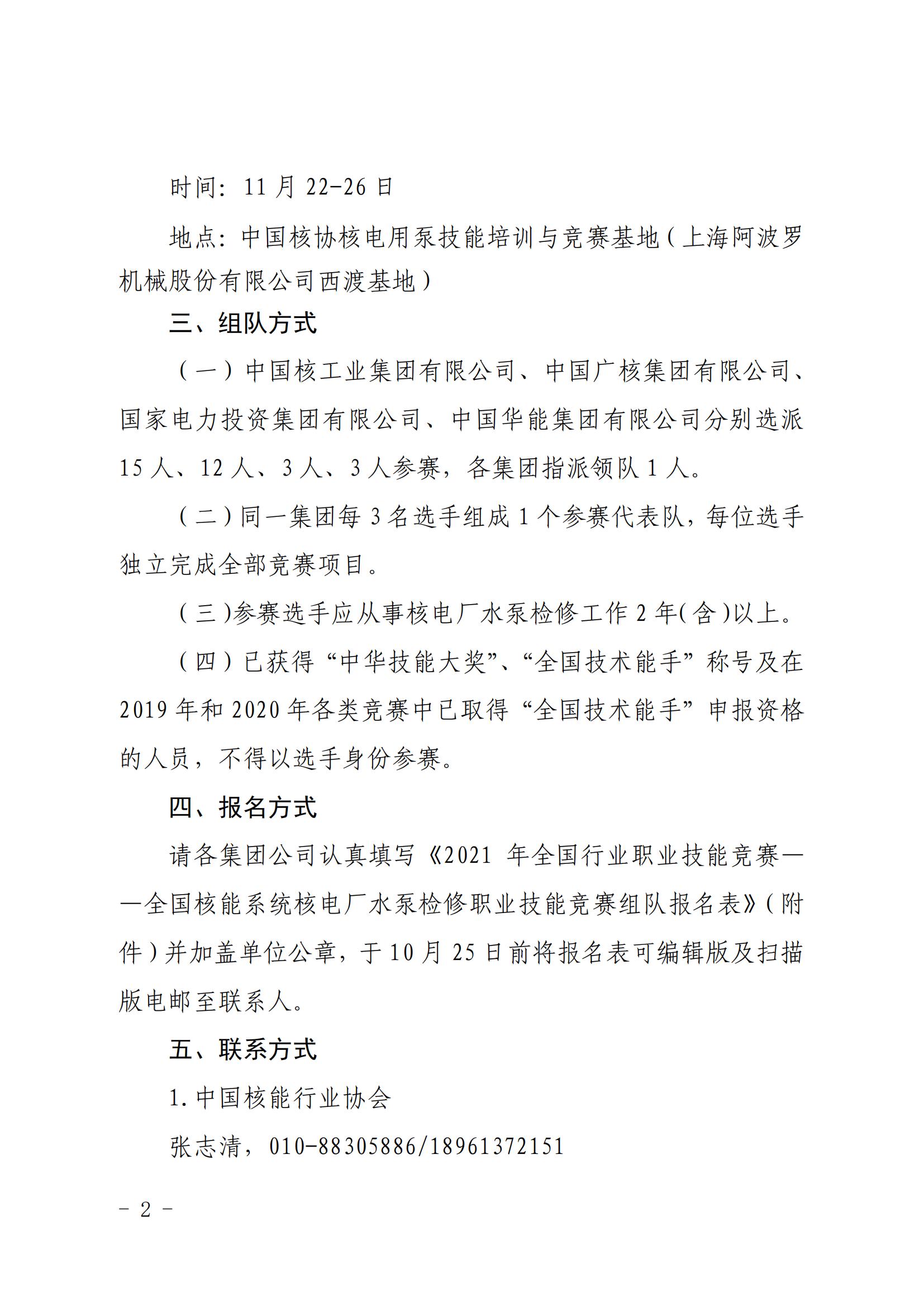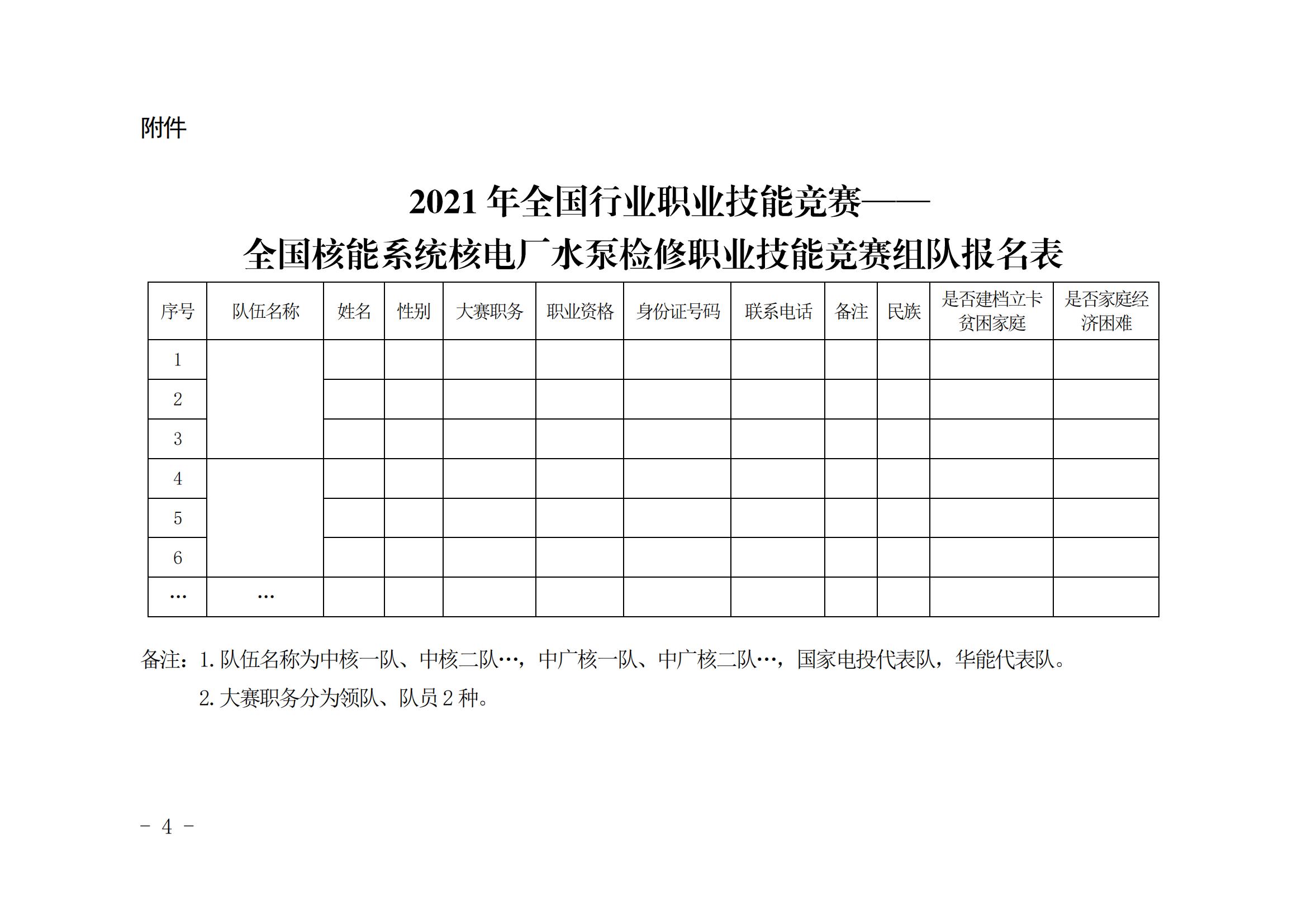 附件:2021年全国行业职业技能竞赛——全国核能系统核电厂水泵检修职业技能竞赛组队报名表.docx