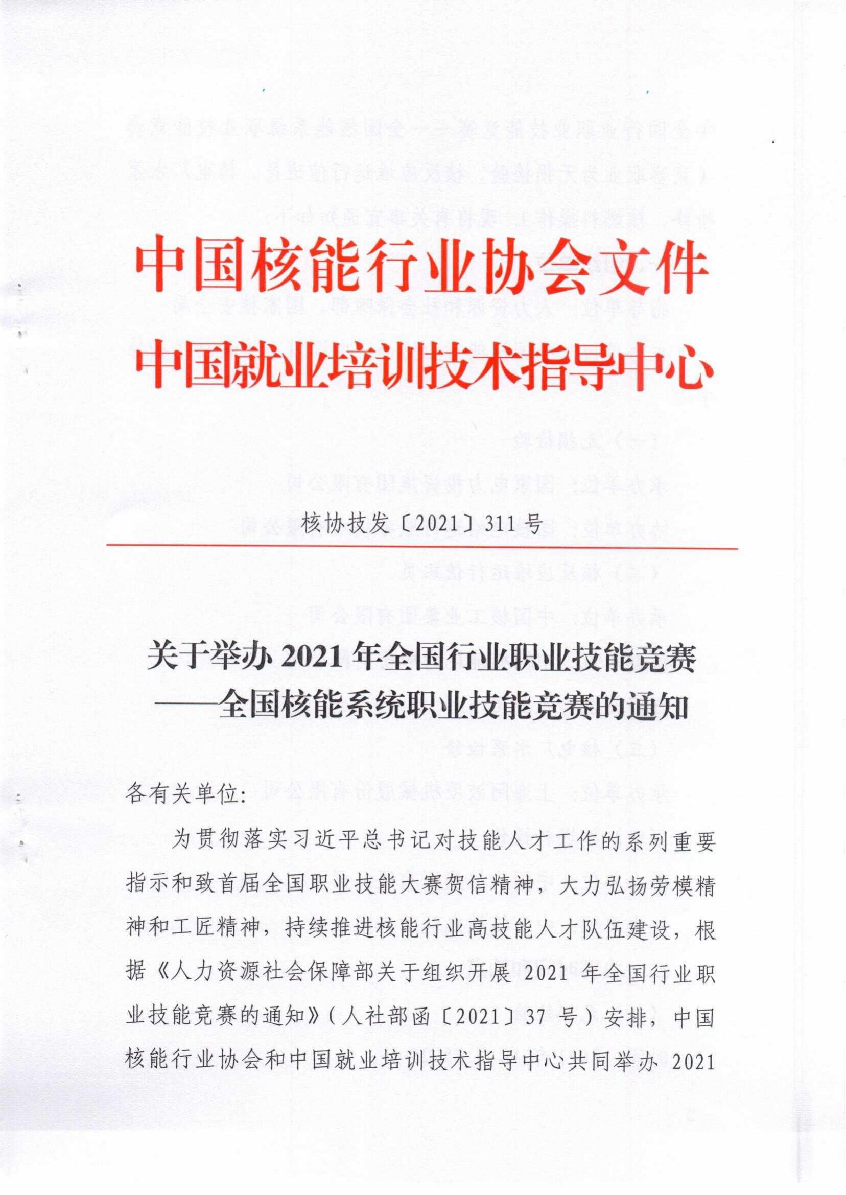 搜狐体育直播:举办2021年全国行业职业技能竞赛——全国核能系统职业技能竞赛的通知