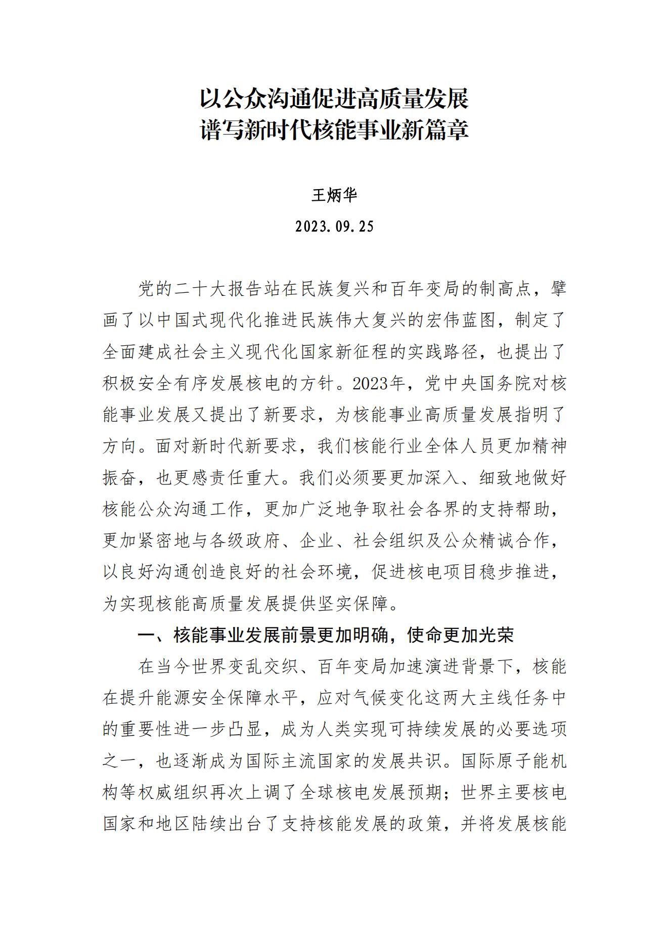 以公众沟通促进高质量发展,谱写新时代核能事业新篇章
