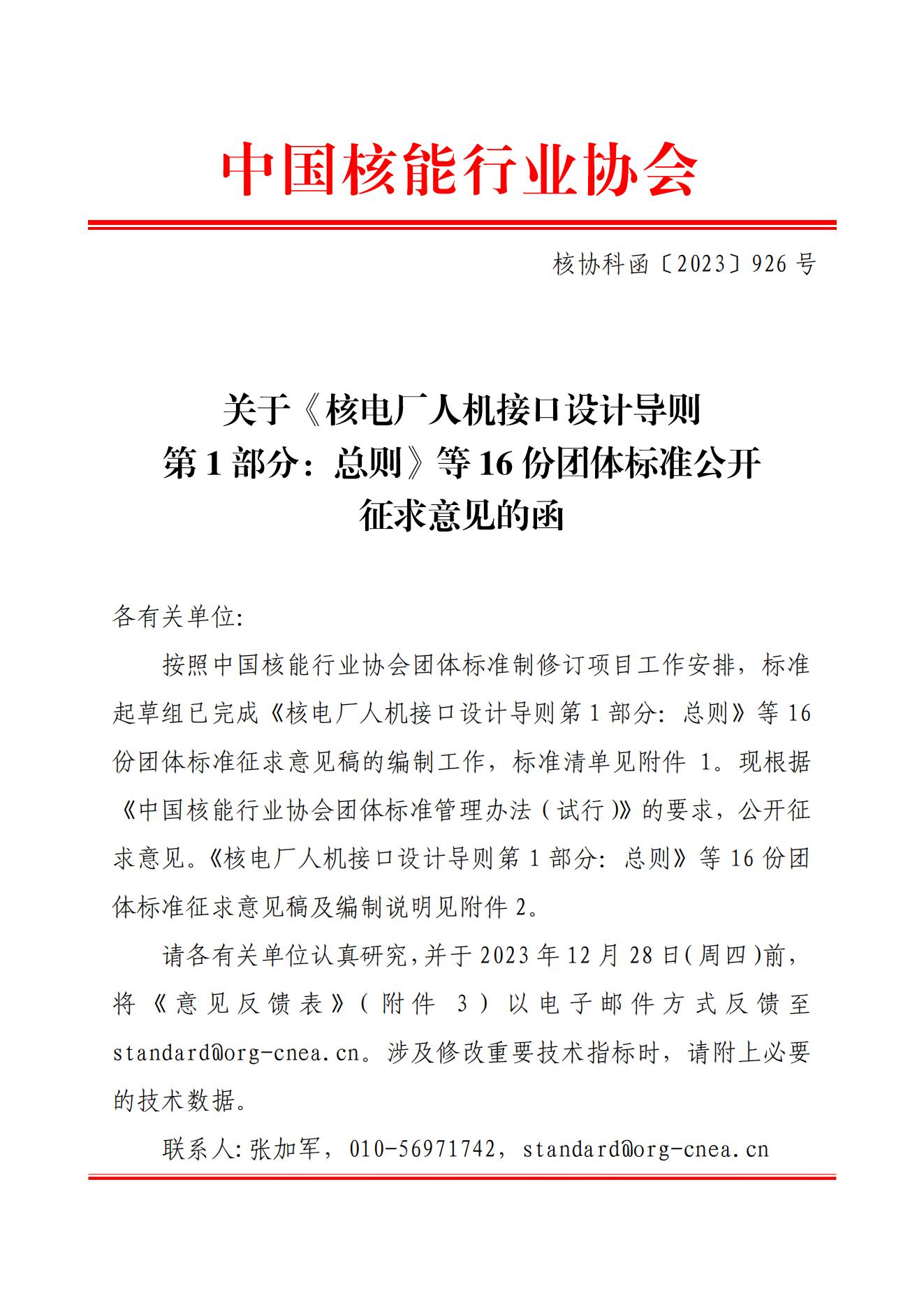 搜狐体育直播:《核电厂人机接口设计导则 第1部分:总则》等16份团体标准公开征求意见的函