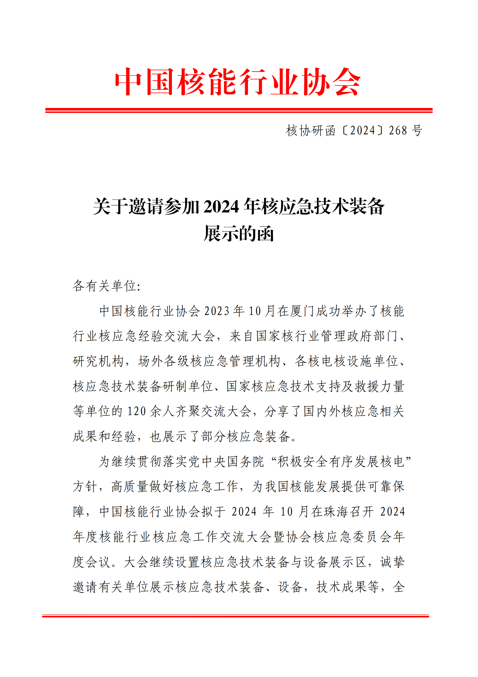 搜狐体育直播:邀请参加核应急技术装备展示的函