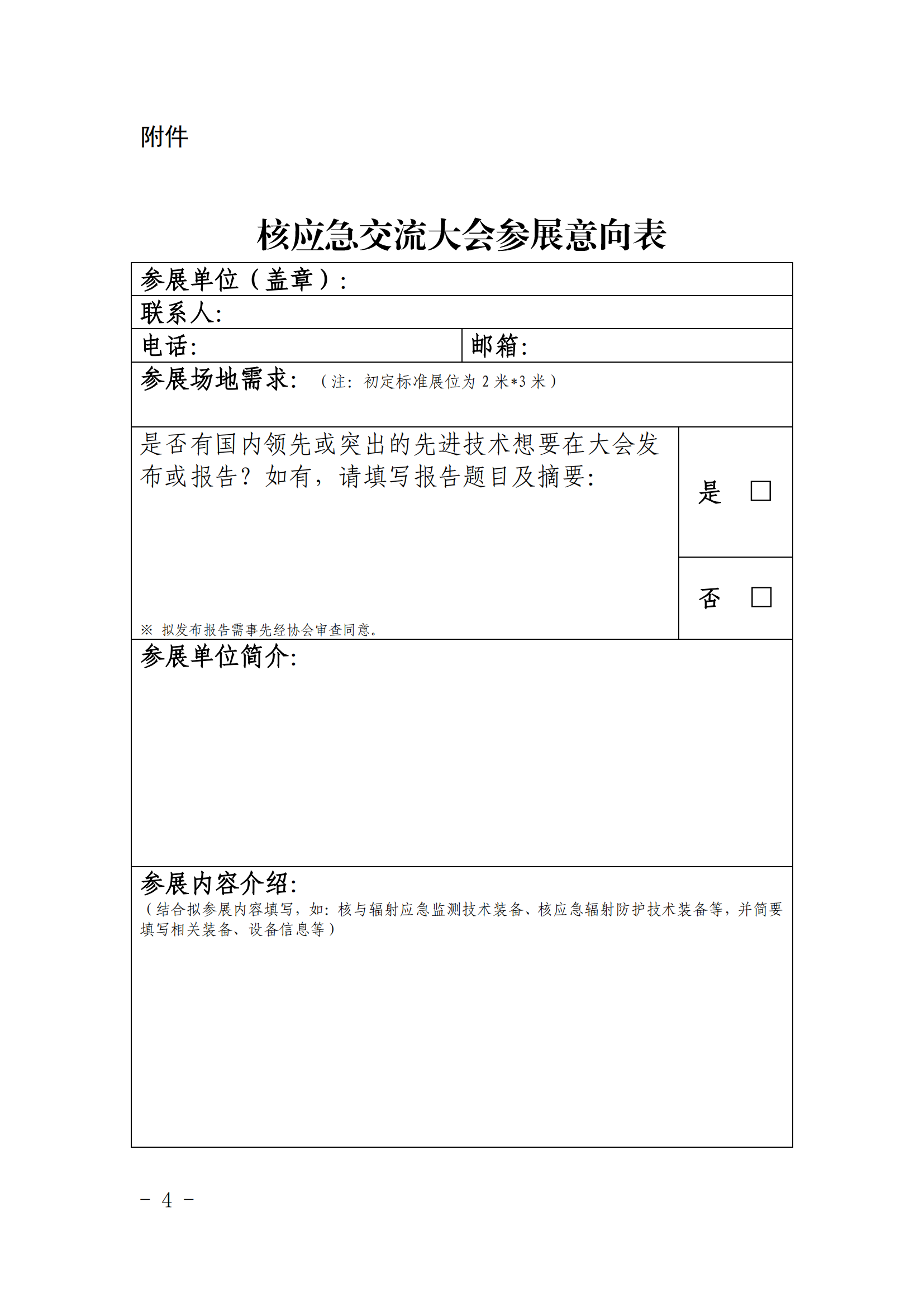 核应急交流大会参展意向表.docx