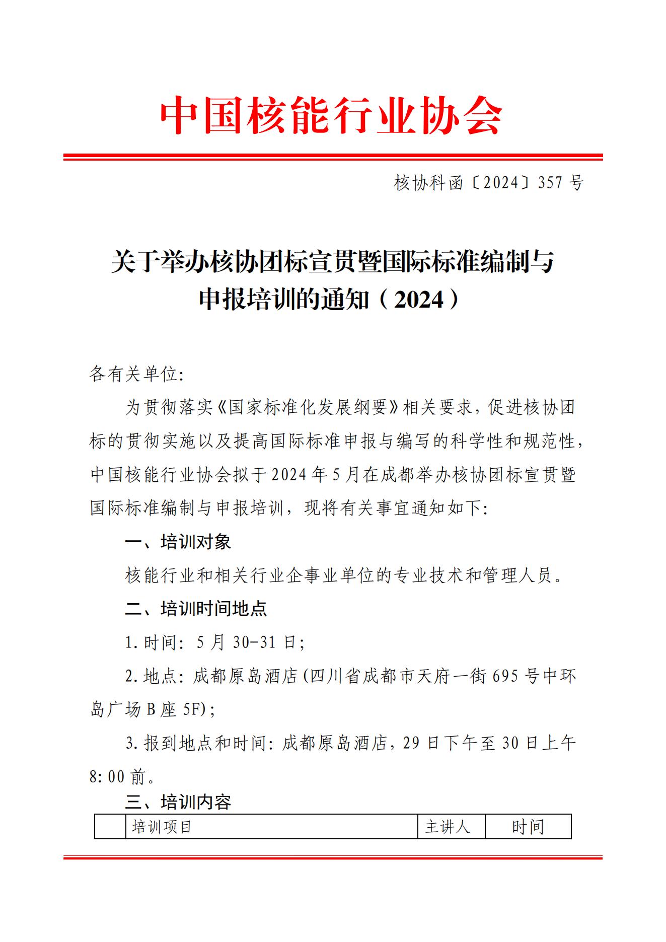 搜狐体育直播:举办核协团标宣贯暨国际标准编制与申报培训的通知