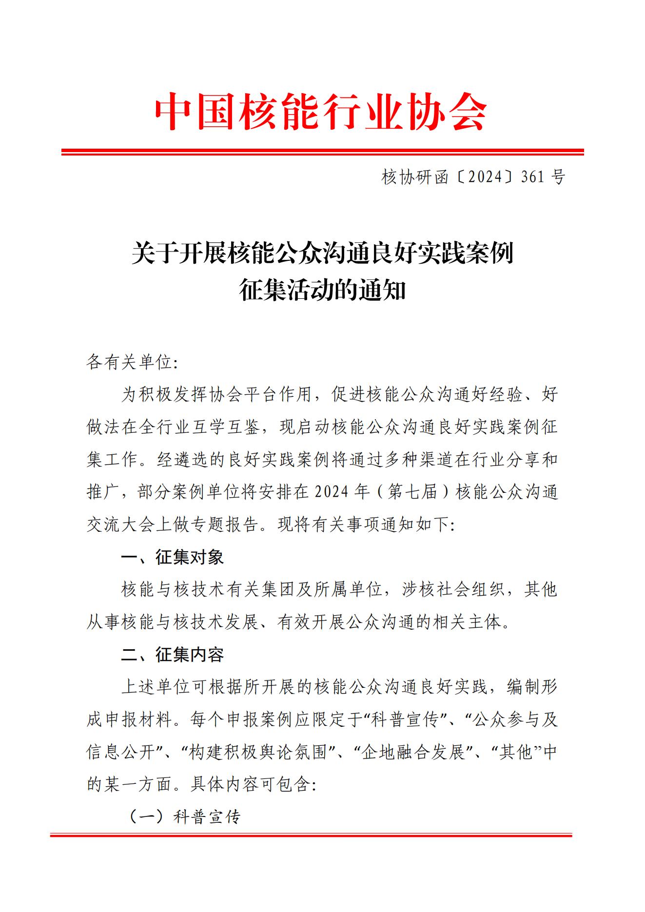 核能公众沟通良好实践征集通知