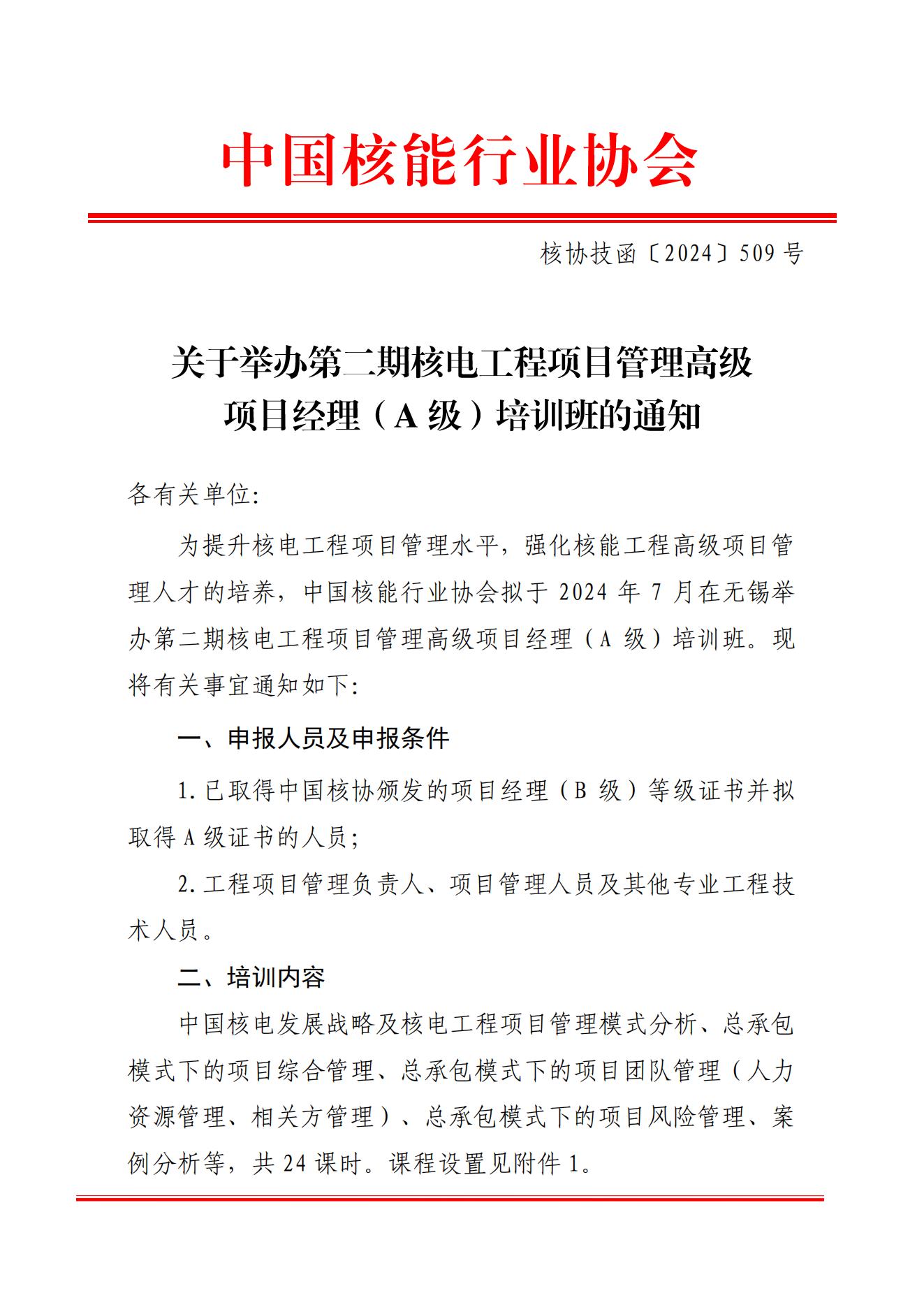 搜狐体育直播:举办第二期核电工程项目管理高级项目经理(A级)培训班的通知