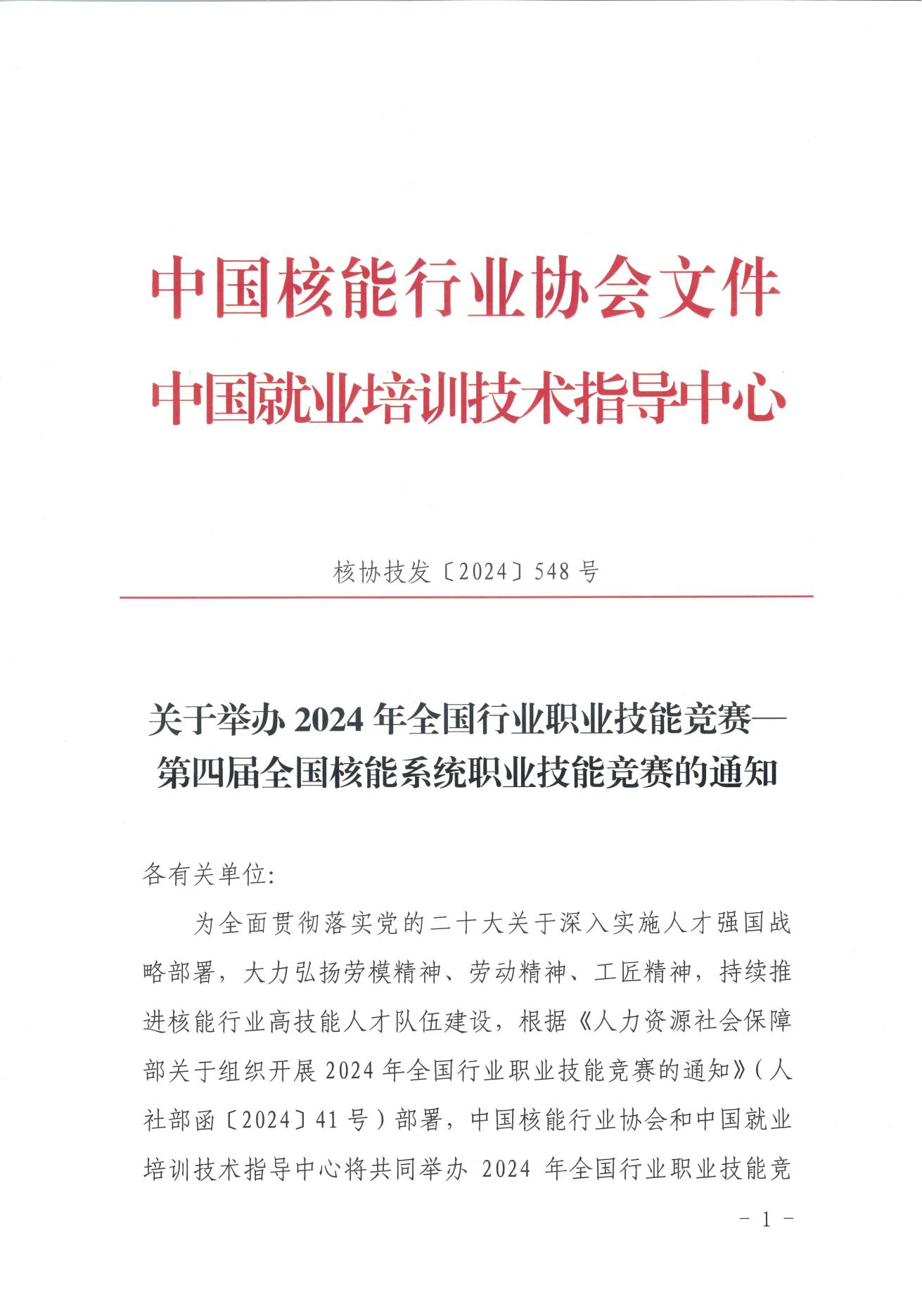 搜狐体育直播:举办2024年全国行业职业技能竞赛——第四届全国核能系统职业技能竞赛的通知