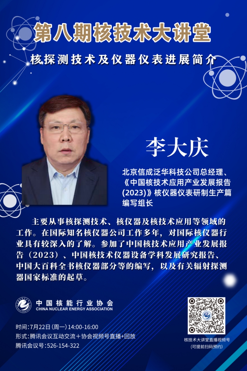 主讲人:李大庆,北京信成泛华科技公司总经理,主要从事核探测技术、核仪器及核技术应用等领域的工作