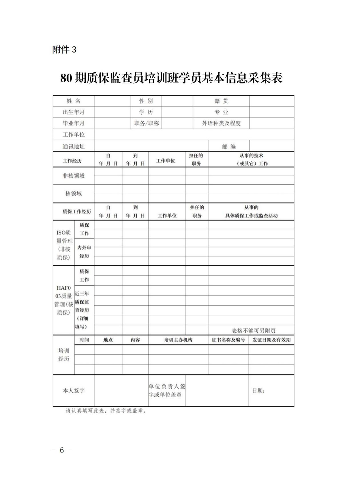 附件3.80期质保监查员培训班学员基本信息采集表.docx