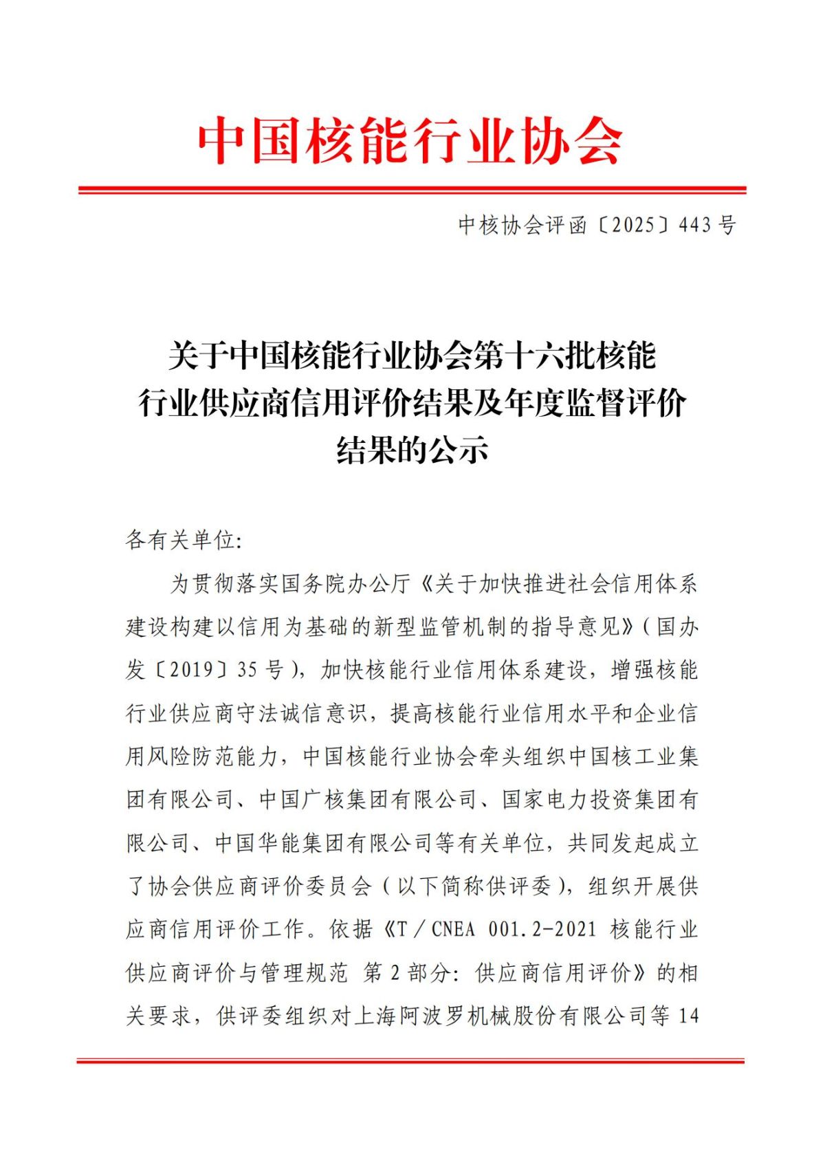 搜狐体育直播:搜狐体育直播第十六批核能行业供应商信用评价结果及年度监督评价结果的公示