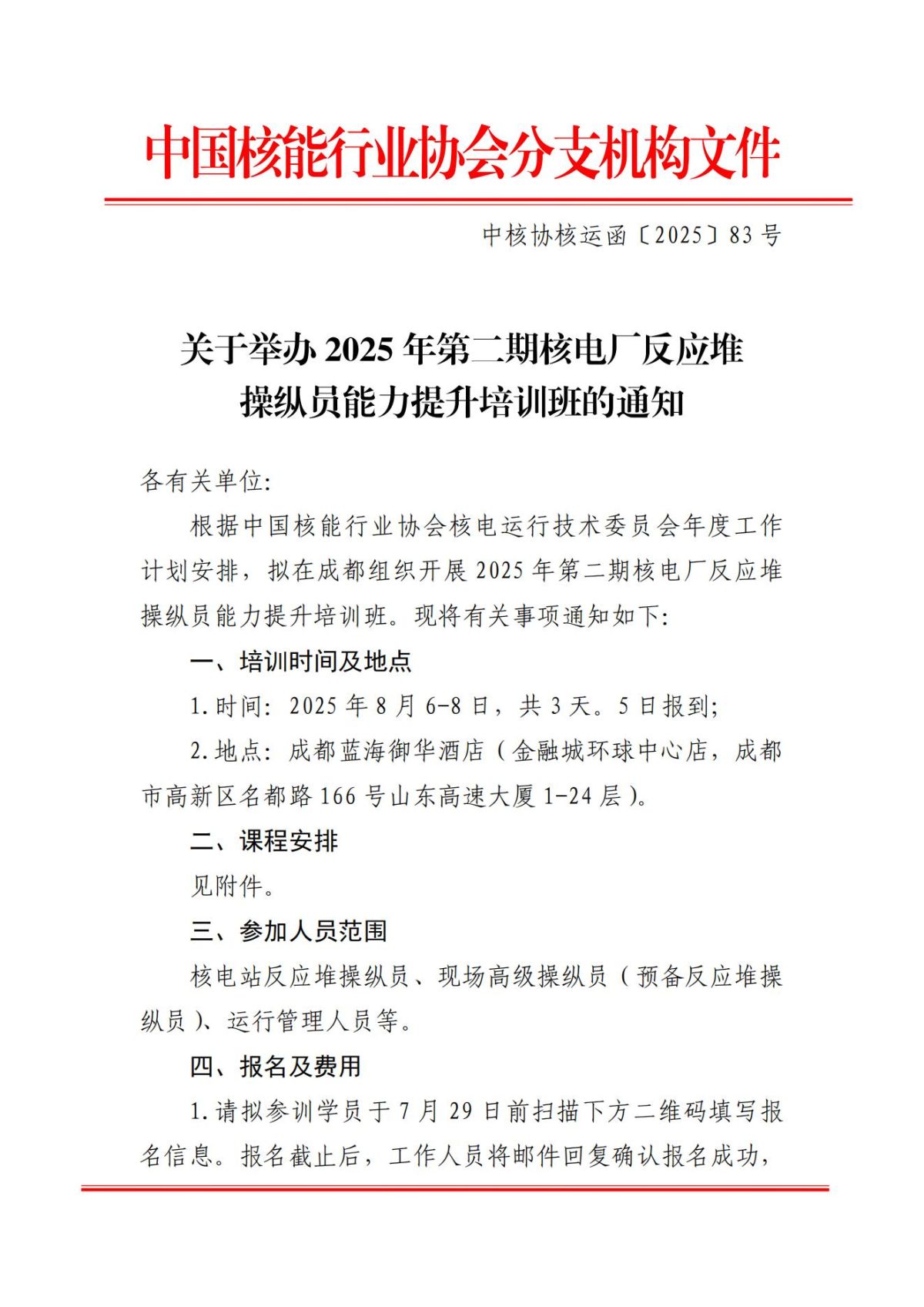 搜狐体育直播:举办2025年第二期核电厂反应堆操纵员能力提升培训班的通知