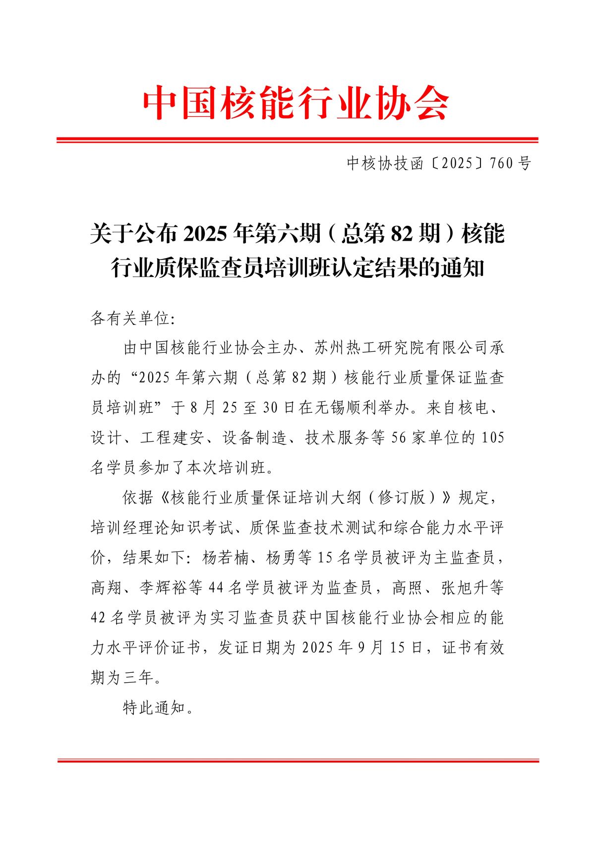 搜狐体育直播:公布2025年第六期(总第82期)核能行业质保监查员培训班认定结果的通知.pdf