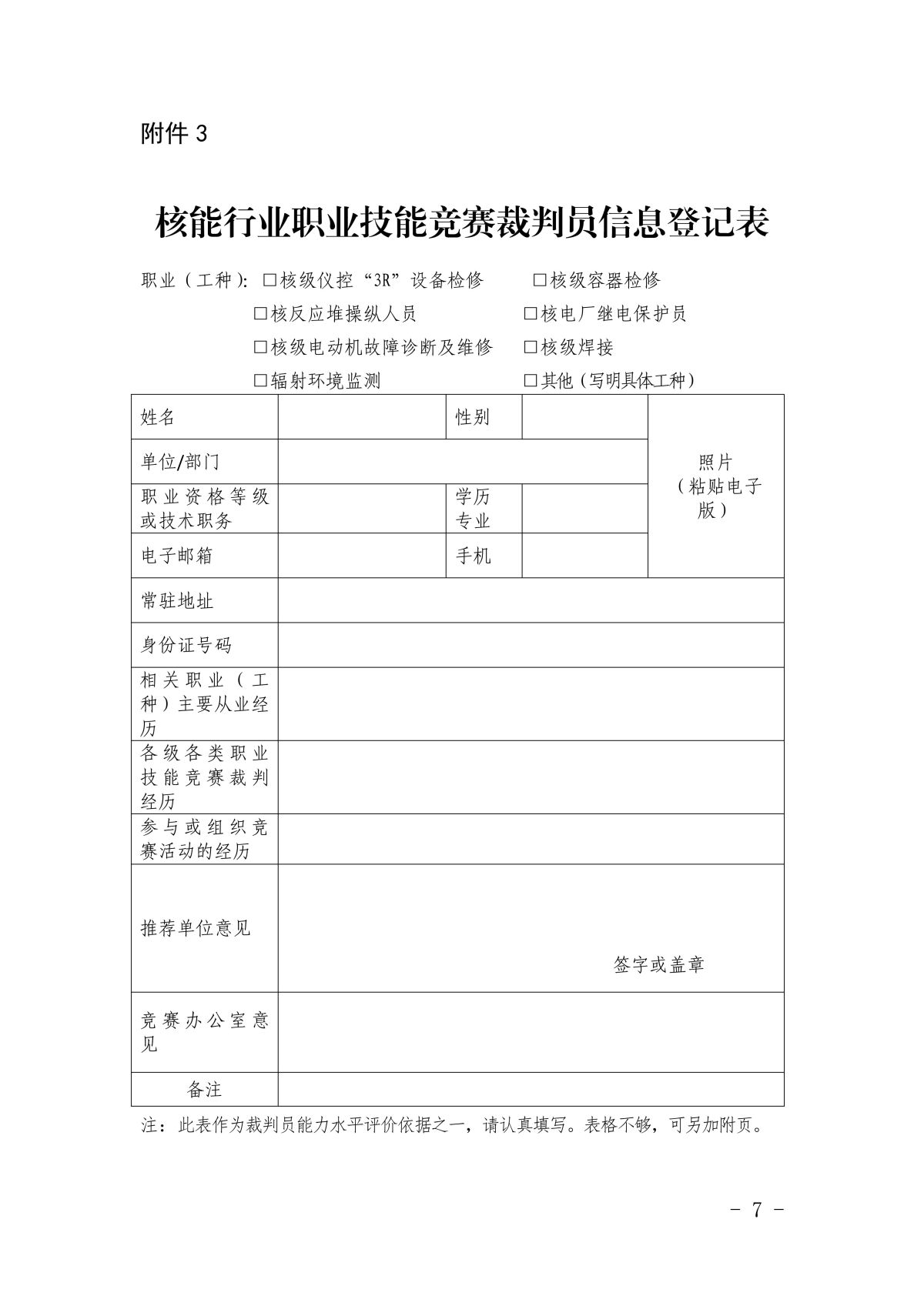 附件3.核能行业职业技能竞赛裁判员信息登记表.docx
